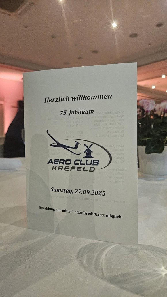 Krefeld, 27. September 2025. Der Aero Club Krefeld feierte am Samstagabend sein 75-jähriges Bestehen mit einer festlichen Jubiläumsveranstaltung im Mercure Hotel im Krefelder Stadtteil Traar. Zahlreiche Mitglieder, Gäste und Gratulanten blickten gemeinsam auf dreiviertel Jahrhundert Vereinsgeschichte und sportliche Erfolge zurück.